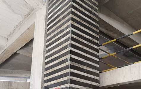 Horse Construction's carbon fiber reinforcement system​ was selected for upgrade due to its powerful features. Carbon fiber was installed on multiple concrete walls of the building, which successfully improved the shear and bending resistance of the wall.